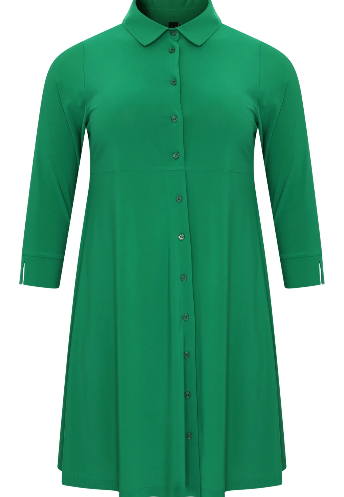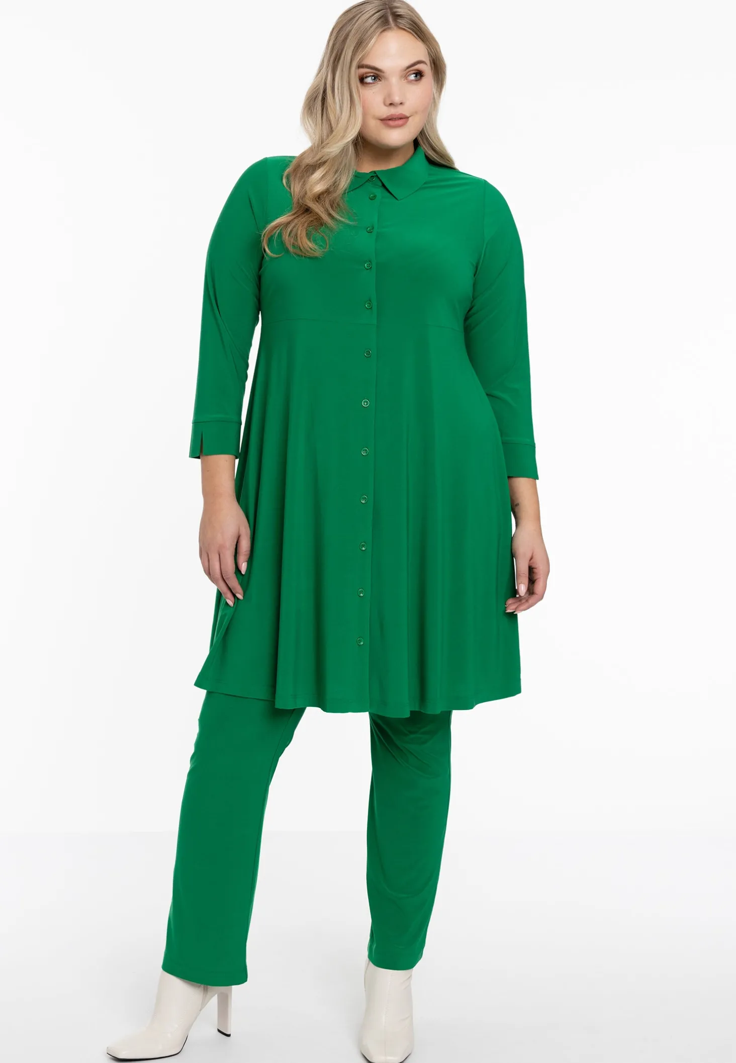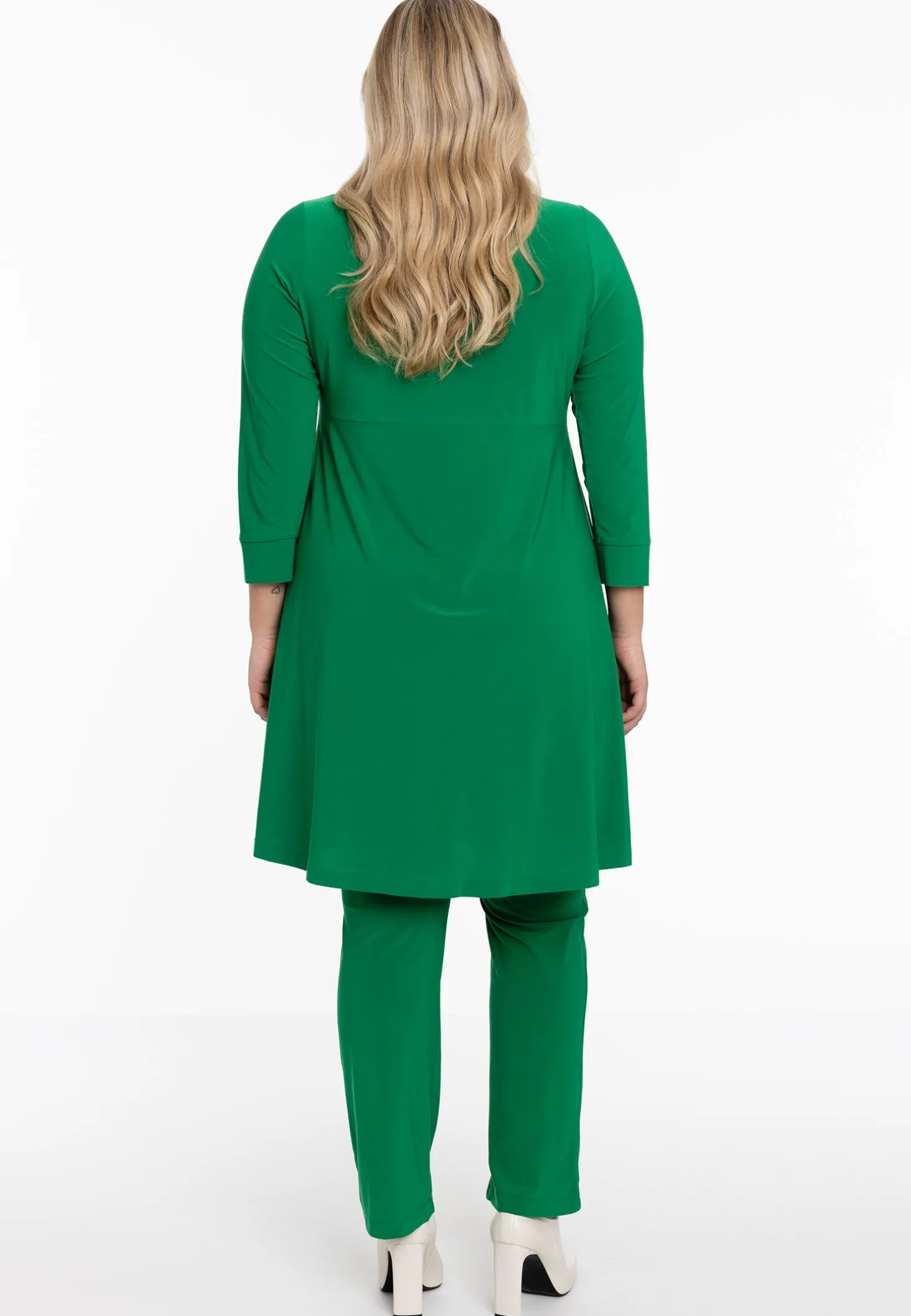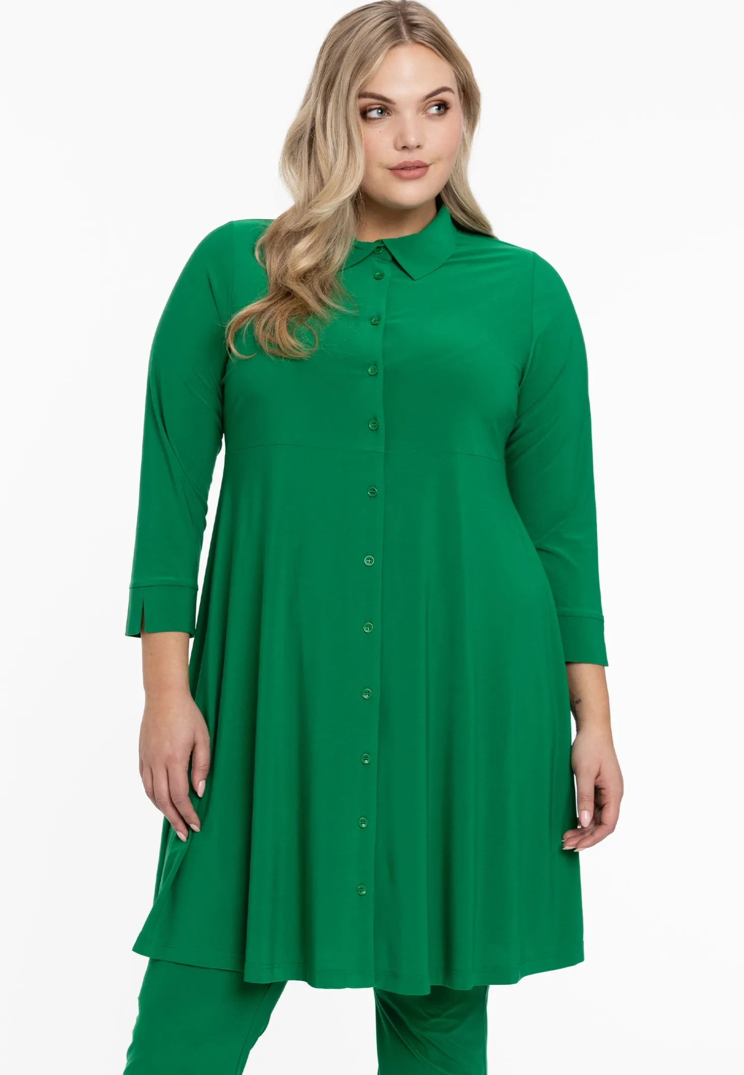 Deze trendy blouse-jurk is op verschillende manieren te combineren. Met een lengte van 100cm kan ze leuk gestyled worden op een skinny jeans of (faux) leren legging maar het is ook zeker een topper met je favoriete sneakers of sandalen. Dit item is vervaardigd in zacht dolce materiaal en heeft een cropped mouw met splitjes.