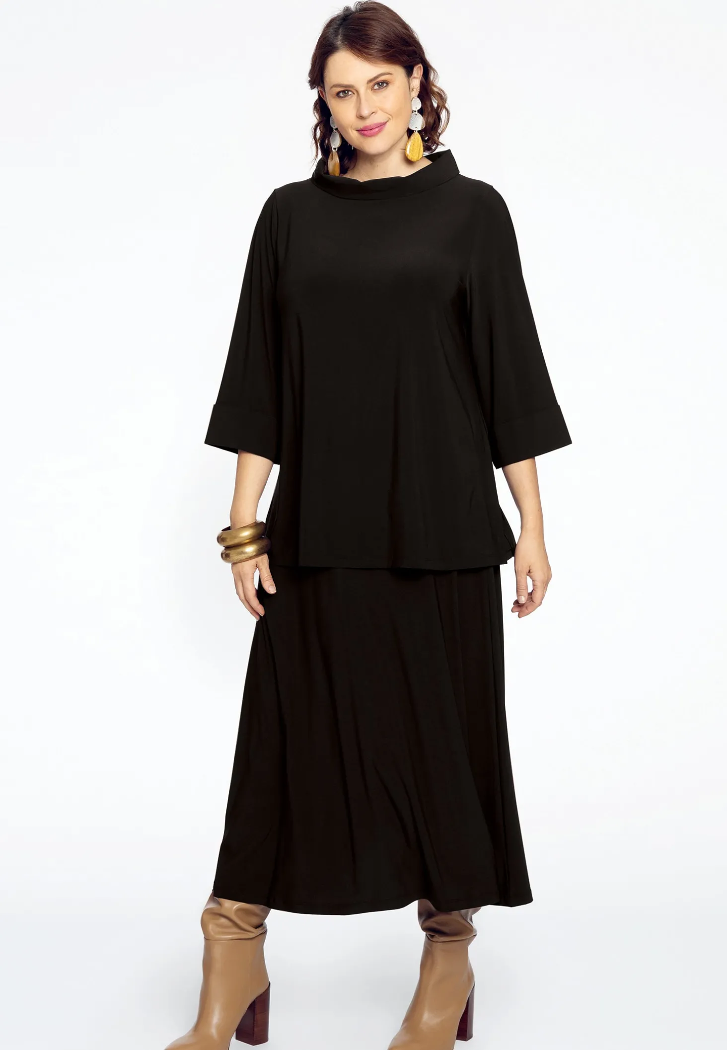 Zowel tijdloos als trendy zijn rokken met een midi-lengte, vooral wanneer ze behoren tot de basic styles in je kast. Dit exemplaar heeft een A-lijn pasvorm, rondlopende zoom en beweegt sierlijk met je mee wanneer je loopt. In het dolce materiaal en met een elastische tailleband. Ga de dansvloer op en zwier heerlijk in het rond.