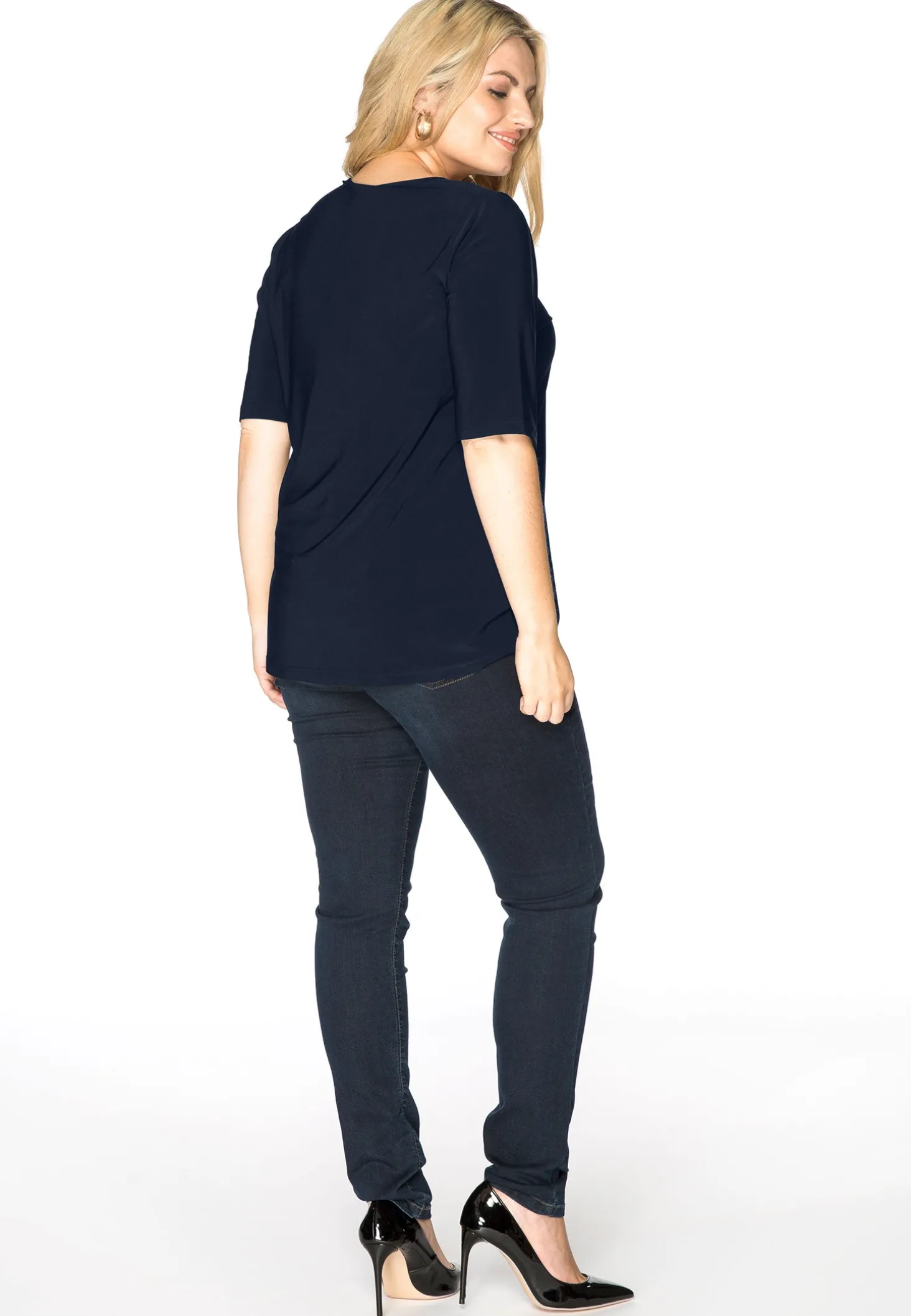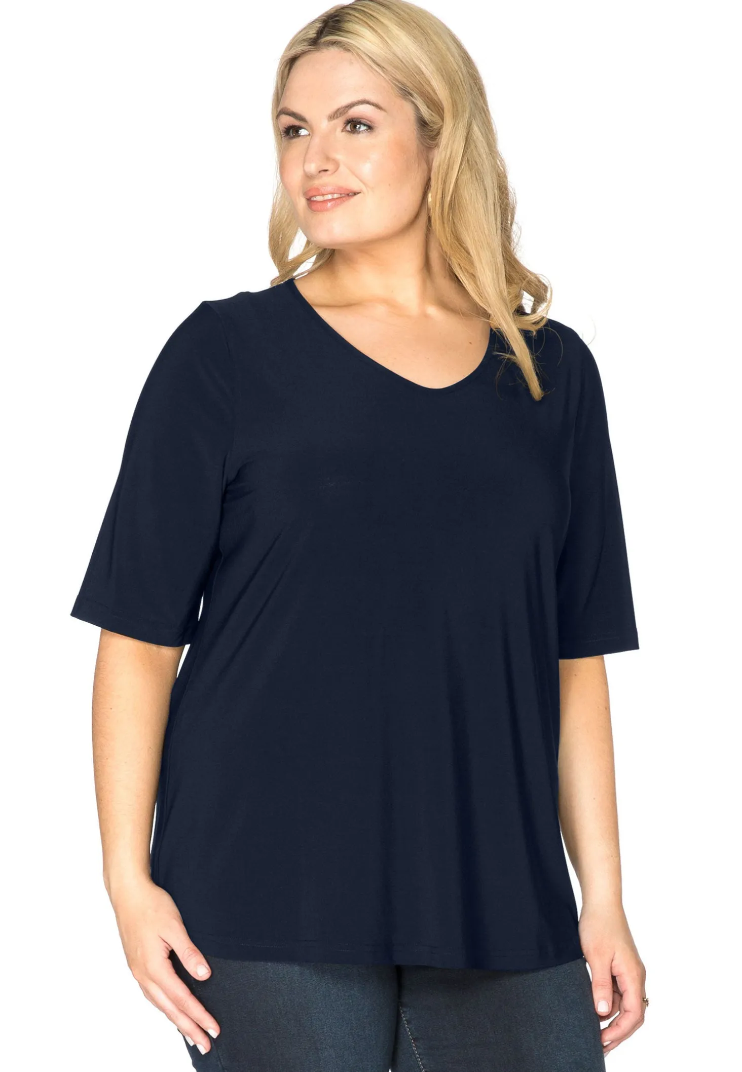 Een basis shirt in onze comfortabele, zachte dolce kwaliteit met korte mouwen en een v-hals. Het shirt reikt tot op de heupen en valt niet strak. Een perfect item om aan je basisgarderobe toe te voegen!