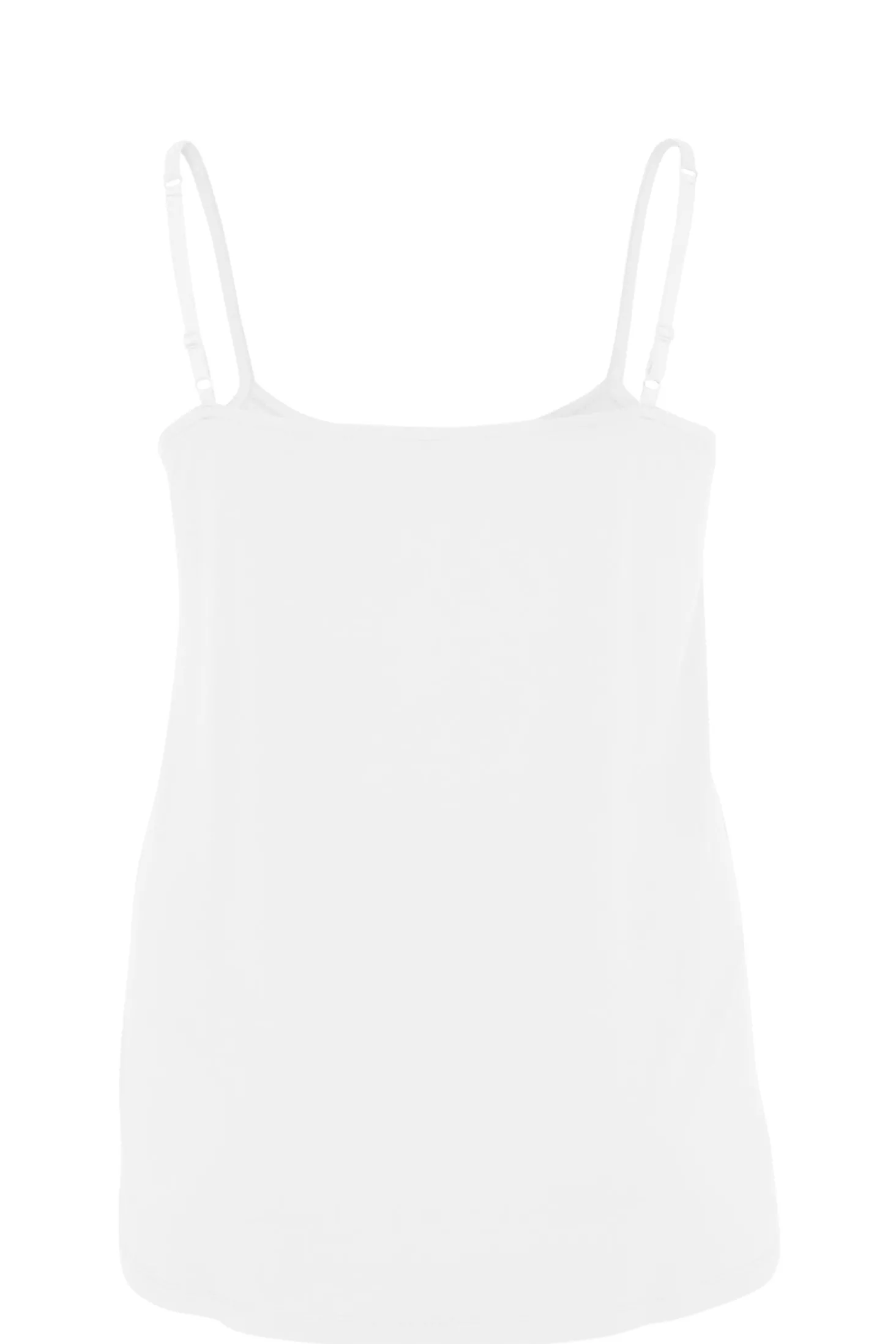 Een basis spaghettitop met een ronde hals en een klassiek A-lijn silhouette. Draag de top met een colbert of een shrug.