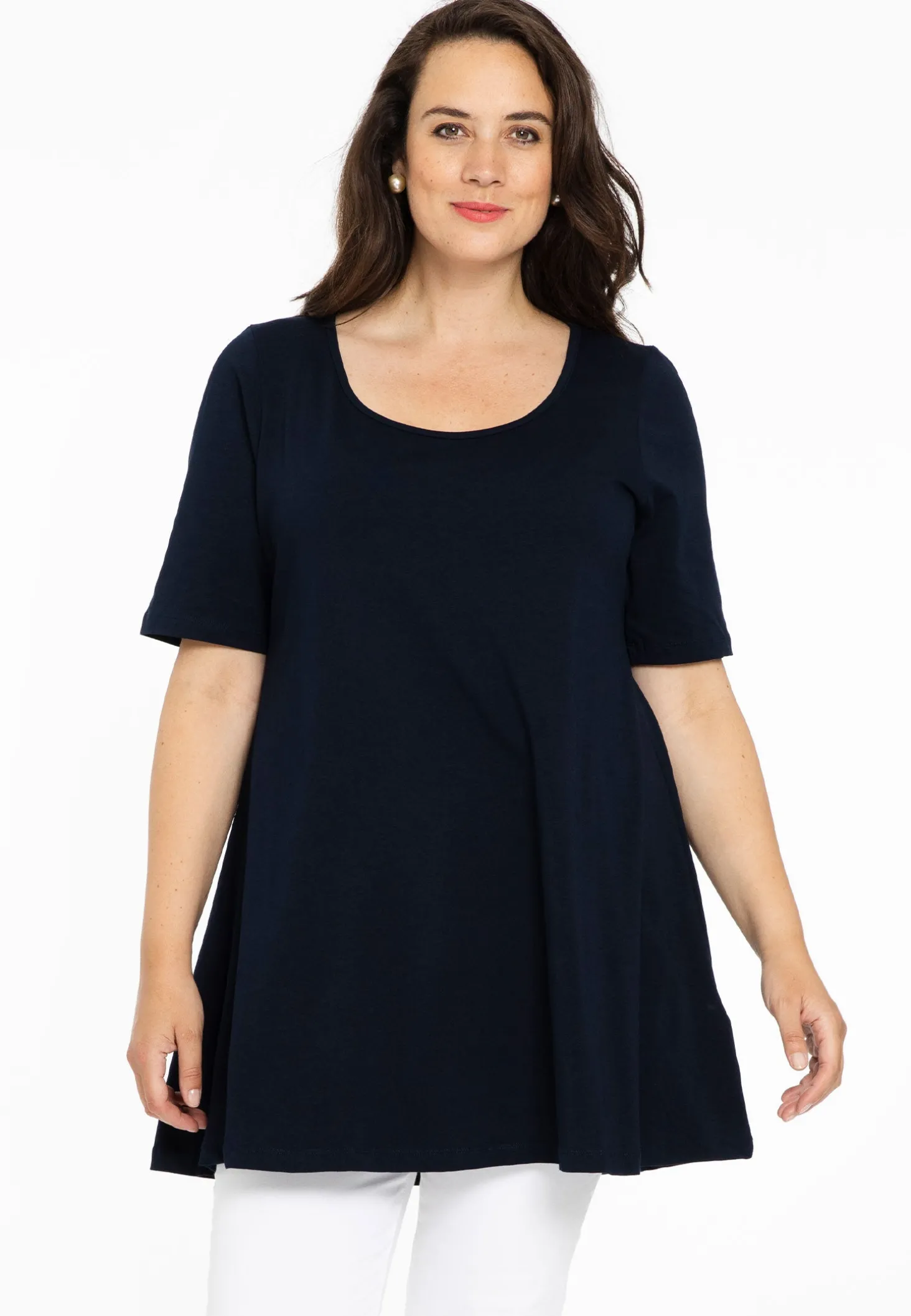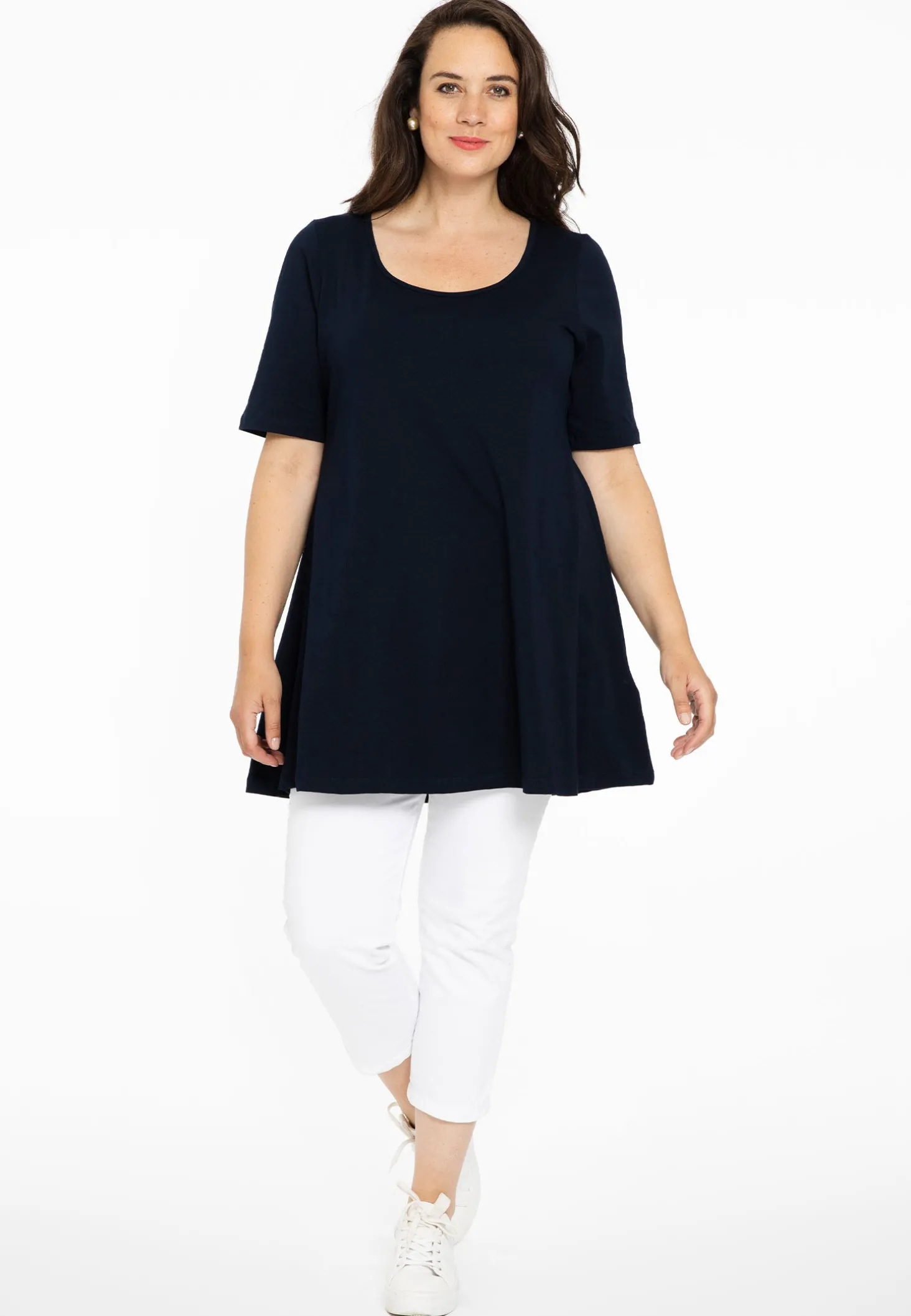 Nieuw bij Yoek, basics gemaakt van katoen. Deze tuniek uit de nieuwe basic collectie heeft een wide bottom fit.