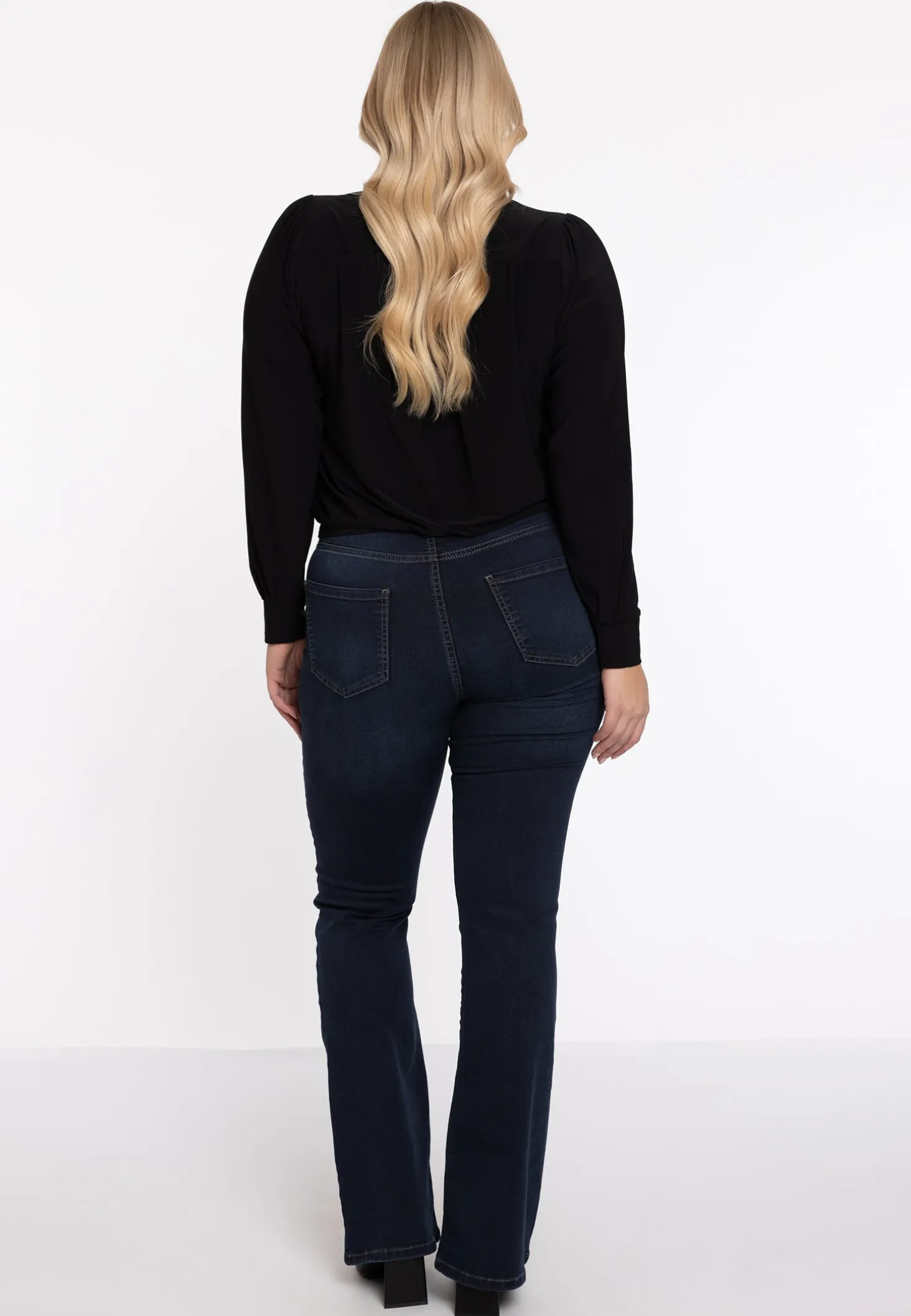 Een moderne variant op onze dolce blouse is dit exemplaar. De blouse is voorzien van knopen langs de voorkant, heeft lange mouwen, een klassieke kraag en een korte pasvorm. Het is gedetailleerd met een tailleband.