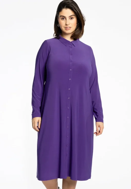Deze blouse-jurk is gemaakt van het fijne dolce materiaal. Dat maakt dit item erg comfortabel en zorgt voor een luxe uitstraling. De blouse heeft doorlopende knopen in het midden, een polokraag en loopt wijd uit. Combineer het item met je favoriete laarzen en je bent klaar voor de dag.