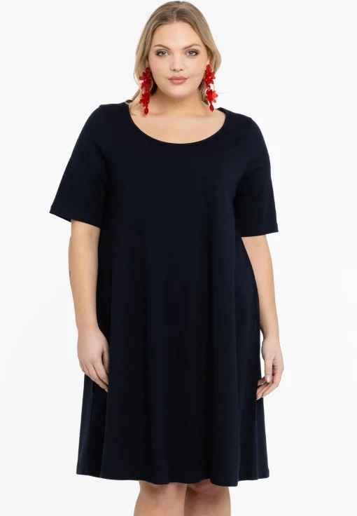 Een basic jurkje in zacht katoen. De jurk heeft korte mouwen en een A-lijn.We adviseren je een maat kleiner te bestellen.