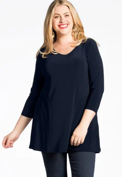 Basic item in onze comfortabele Dolce kwaliteit met driekwart mouwen, een V-hals en een flare pasvorm. Dit shirt is perfect om te combineren met een jasje of vest.
