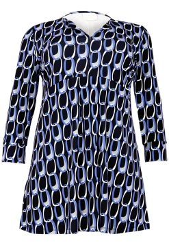 Deze tuniek is gemaakt van luxe dolce-stof en valt elegant en voelt zacht en comfortabel aan. Het opvallende blauw-zwarte patroon voegt een krachtig statement toe aan elke outfit en zorgt ervoor dat je opvalt in stijl. Deze tuniek heeft kortere mouwen en is perfect voor alle seizoenen!